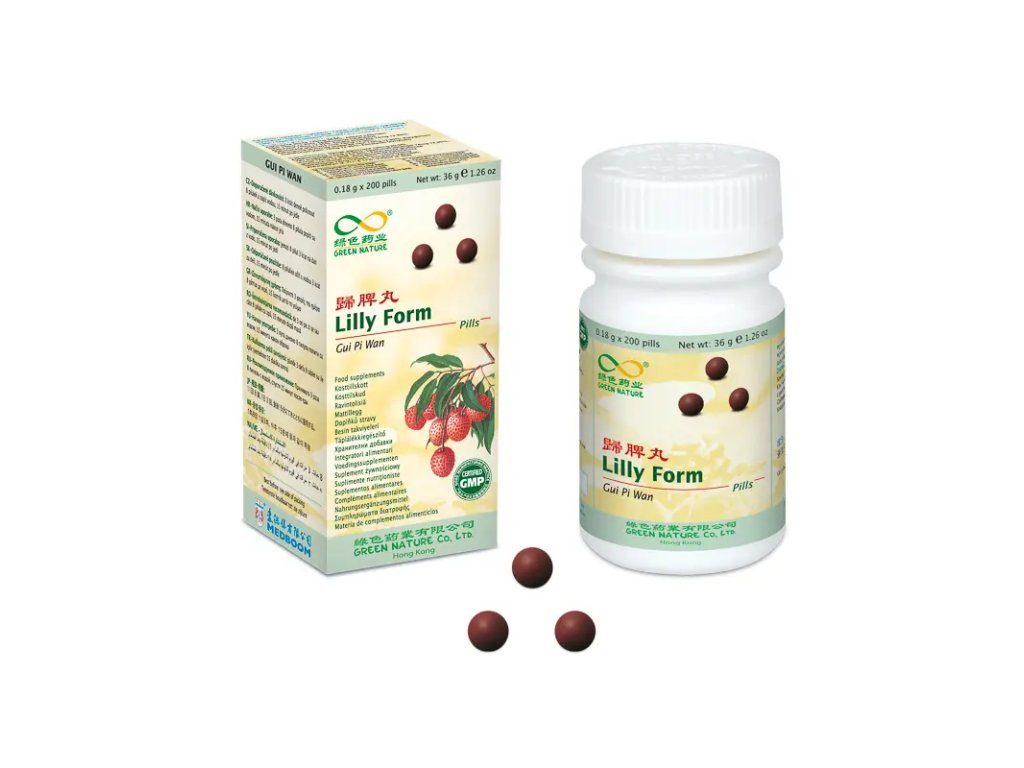 Gui Pi Wan - Lilly Form (192) se z hlediska tradiční čínské medicíny používá u stavů jako je duševní přepracovanost, zhoršení intelektuální výkonnosti, zapomnětlivost či zhoršená paměť, nadměrné přemítání (hlavně večerní) s nemožností usnout, posílení mentálního výkonu, nervozita, malátnost, nedostatek červených krvinek.