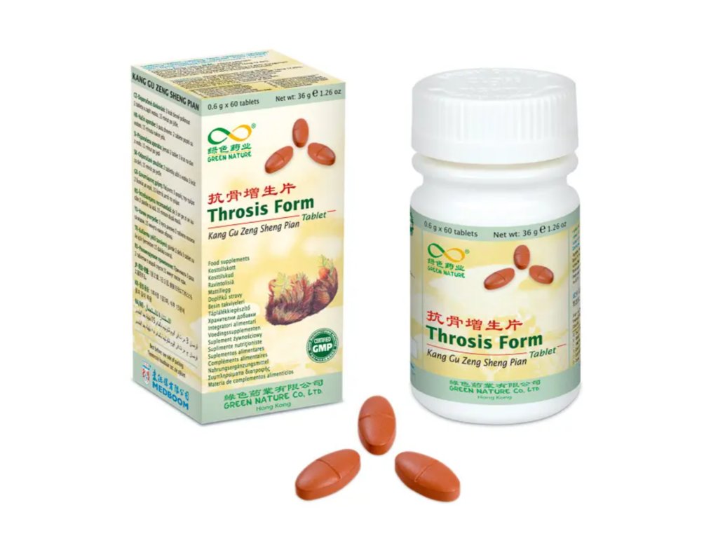 Radix Rehmanniae Preparata 26.7%, Herba Pyrolae 13%, Rhizoma Drynariae 13%, Herba Epimedii 13%, Caulis Spatholobi 13%, Semen Raphani 6.3%, Excipiens 15%, Maize Amylum, Maize Dextrinum, Maltdextrine, Carboxymethyl Starch Sodium, Microcrystalline Cellulose, Polyvinylpyrrolidone