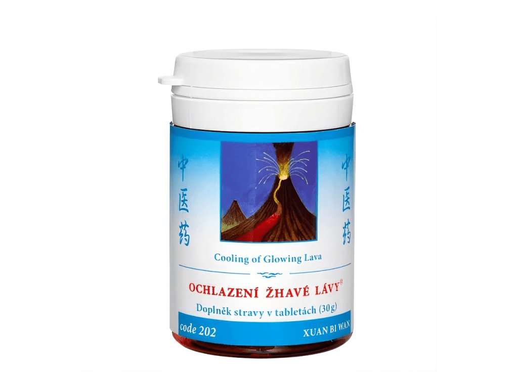 Bylinný doplněk stravy Ochlazení žhavé lávy má za cíl: Odstranit vlhké horko SHI/RE z těla, Uvolnit zablokované dráhy YU LUO, Zmírnit bolesti kloubů a záněty, Snížit hladinu cholesterolu a kyseliny močové.Dávkování: