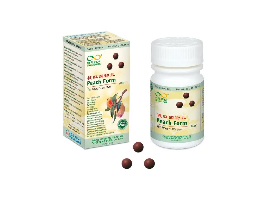 Tao Hong Si Wu Wan - Peach Form se z hlediska tradiční čínské medicíny používá u stavů jako je zpožďující se menstruační cyklus či velmi nepříjemná menstruace.